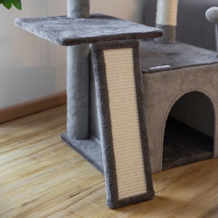 - Stebri in praskalna deska so prevlečeni z naravnim sisalom, ki je primeren za vsakodnevno nego krempljev.