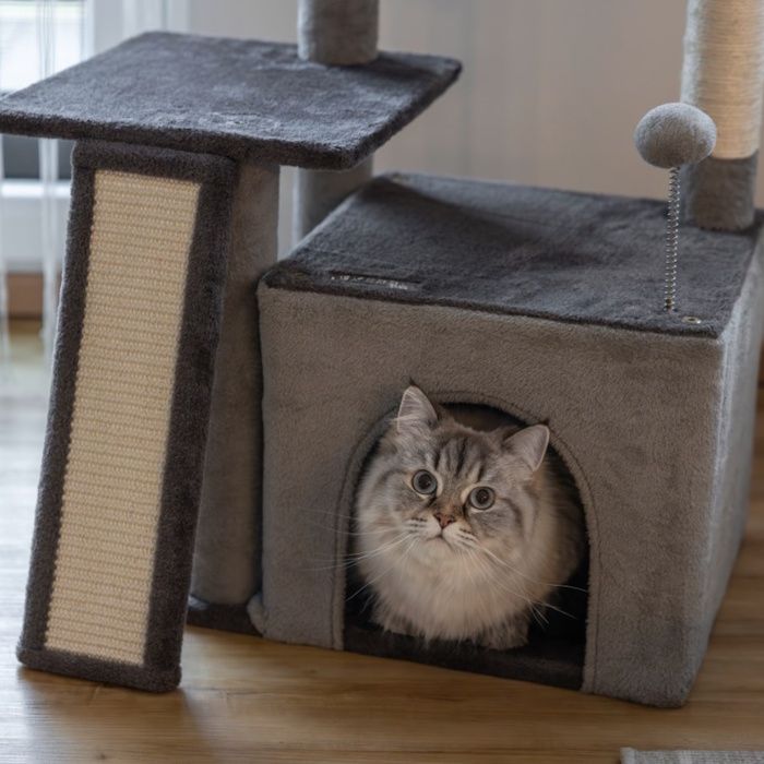 - Vsak praskalnik s klančino, votlino in mehko posteljo mačkam ponuja nešteto možnosti za igro, zabavo in počitek.