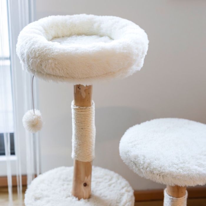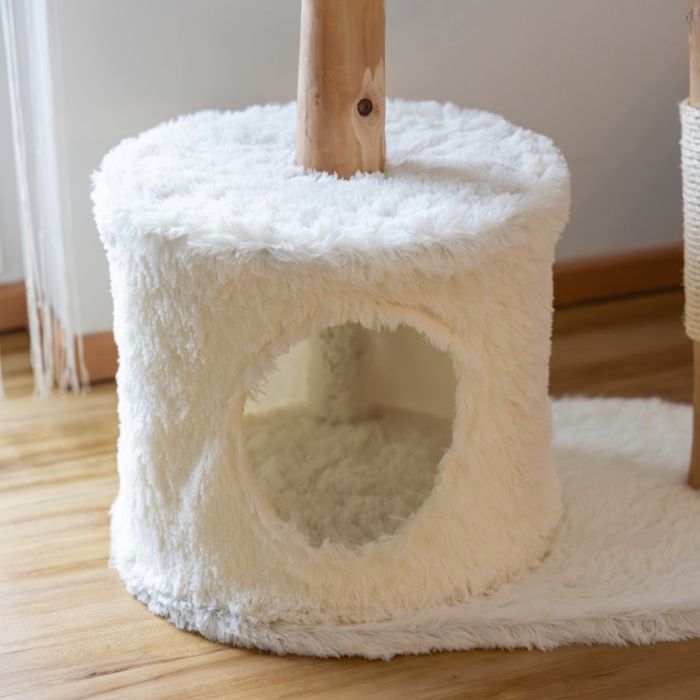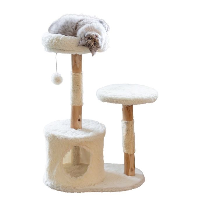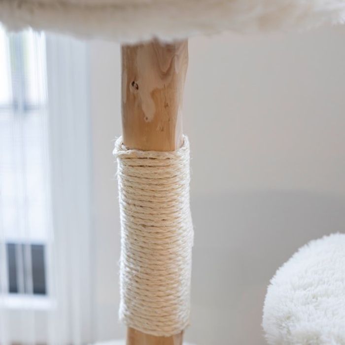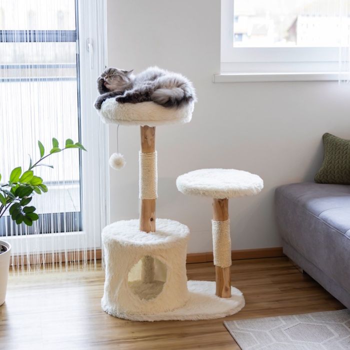 - POZOR: Vsako leseno deblo je edinstveno, zato se lahko oblika mačjega drevesa nekoliko razlikuje od praskalnika, ki je prikazan na slikah.
