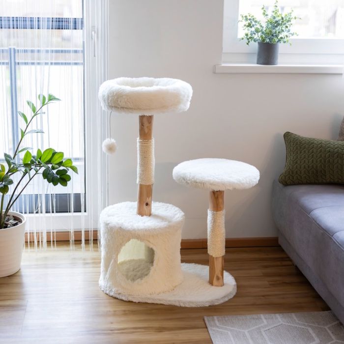 - Elegantno mačje drevo z edinstvenim dizajnom je visoko 90 cm in ima nenavaden videz.