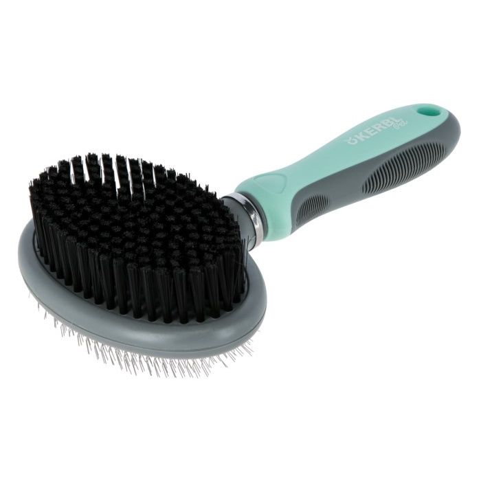 • Dvojna pasja krtača ima ergonomsko oblikovan ročaj, ob straneh ročaja so gumijaste letvice za boljši oprijem.