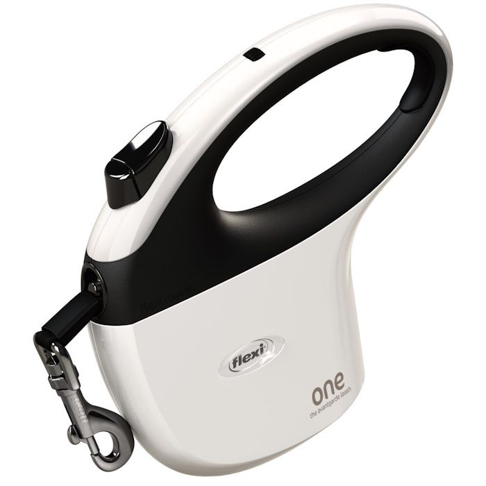 - Flexi povodec iz linije One ima izpopolnjen podaljšek traka in še posebej robusten trak.