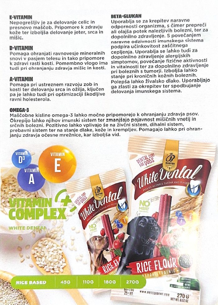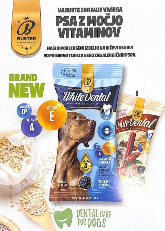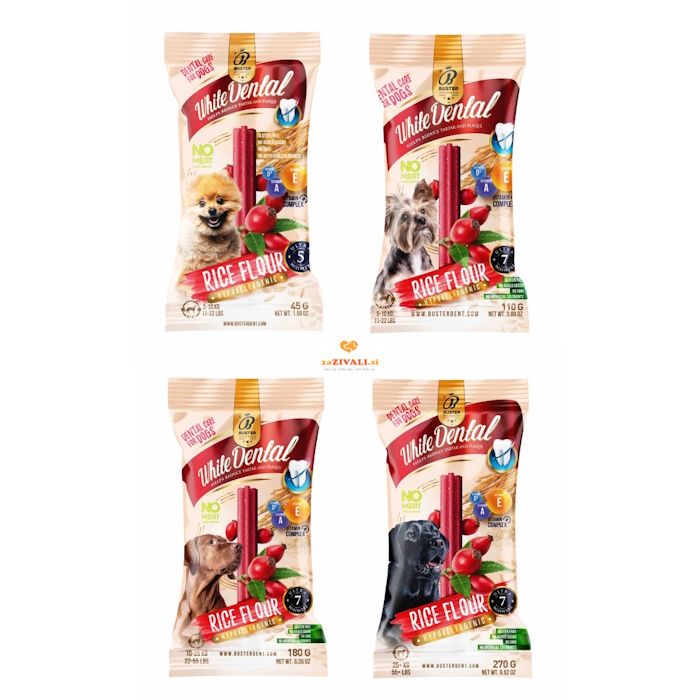 - Buster White Dental dentalne palčke za nego zob srednje velikih psov (teža od 10 do 25 kg).