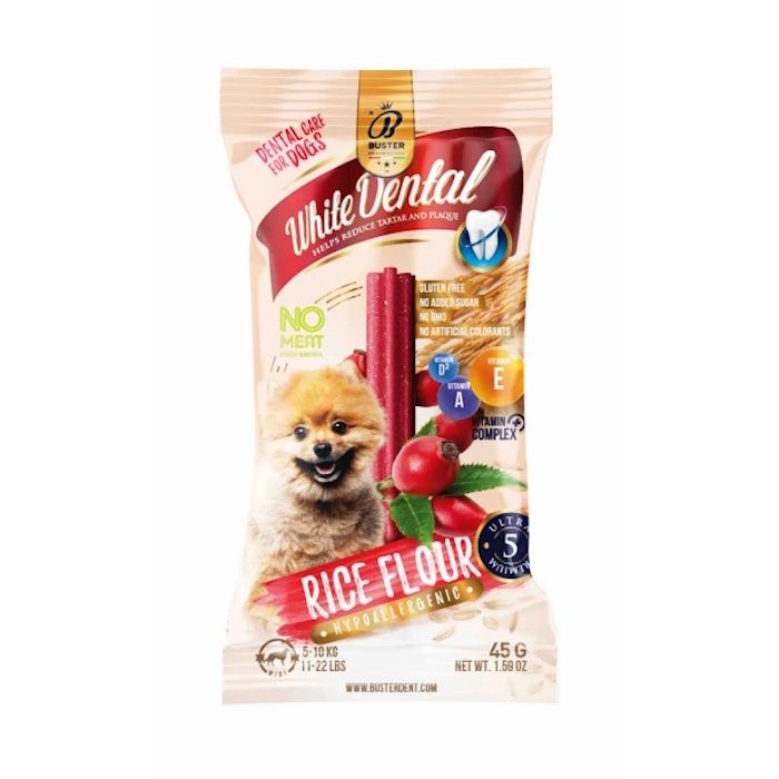 - Buster White Dental Rosehips dentalne palčke XS so primerne za nego zob malih psov.